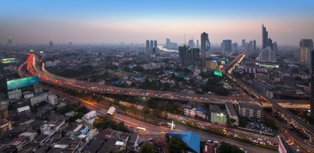 Panorama of Bangkok expressway from Baiyoke Sky Hotel Thailand