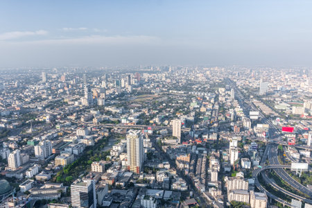 Bangkok city in day. In city\'s tallest building Area of the park. During the daytime the weather and clear.