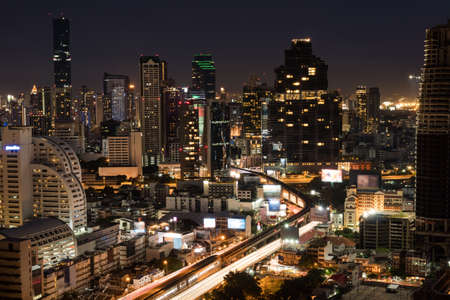 View of the business area in Bangkok at night, Bangkok is the capital of Thailand and is a popular tourist destination.