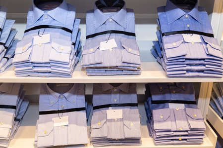 Clothing on display in a boutique store in shopping mall, fast fashion concept
