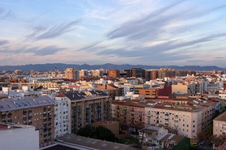 Valencia, Spain, December 2019. Beautiful city in the rays of the setting sun. View from above. Spanish travel.
