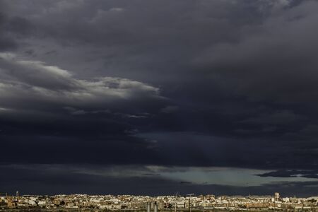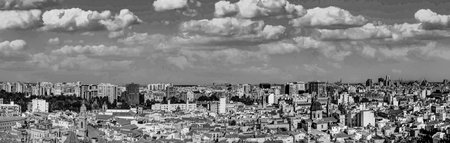 Panoramic view of Madrid skyline from the Casa de Campo park.