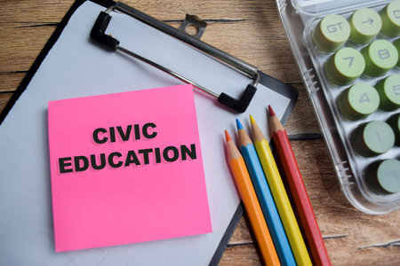 Concept of civic education write on sticky notes isolated on Wooden Table.