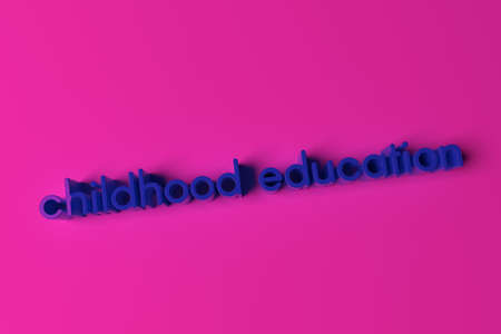 Childhood education, 3D rendering. Typography, keywords, CGI. Decorative, illustrations. For design texture, background.