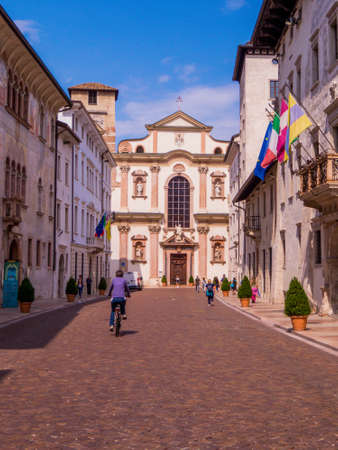 TRENTO, ITALY - AUGUST 30, 2018: View of the Church of San Francesco Saverio in Rodolfo Belenzani street in the old town,