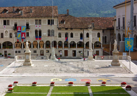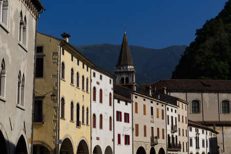 Piazza Maggiore in the city of Feltre in the province of Belluno, italy - 2021. High quality photo