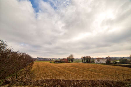 The sun goes behind the clouds over the countryside of Udine, Friuli-Venezia Giulia, Italy