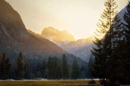 panorama in the high mountains - spring lights