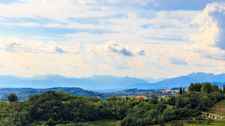 The italian vineyards at the border with Slovenia in a summer afternoon