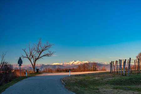 Winter sunset in the vineyard of Savorgnano, Friuli Venezia-Giulia, Italy