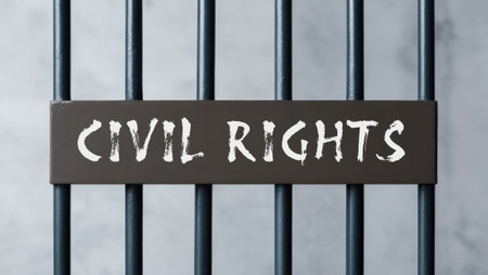 The inscription CIVIL RIGHTS against the background of prison bars