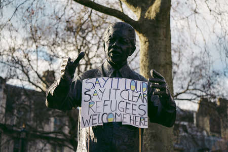 Parliament Square, London | UK - 2022.03.06: Ukrainian people protest, thousands gather to demand tougher sanctions on Russia from British Government, EU and USA to stop the war in Ukraine