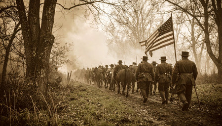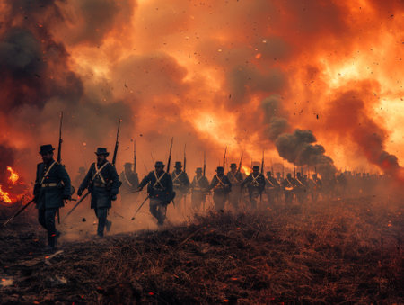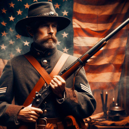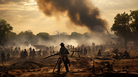 American civil war, high contrast, 8k, cinematic lighting, ethereal light, intricate details, extremely detailed, incredible details, full colored, complex details, by weta digital, photography, photo. Generative AI