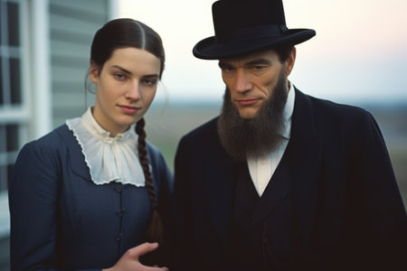Portrayal of Amish people, traditional lifestyle, close bonds of community, rural simplicity, values of cultural richness, traditions of close-knit family friendly living group. village country life