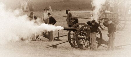 Group of soldiers firing a cannon during battle