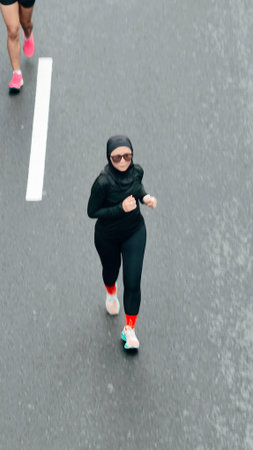 Jakarta, Indonesia - Februari 1, 2026: People running and jogging during Car Free Day event at Sudirman street, showing healthy lifestyle, urban fitness activity, and active commun