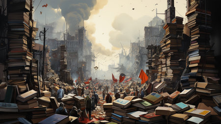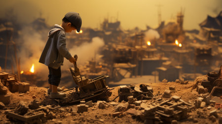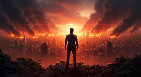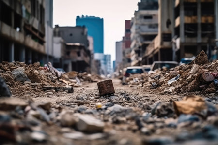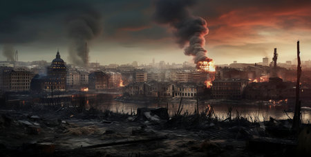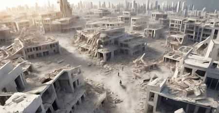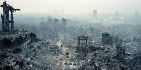 AI Generated. city destroyed by war Apocalypse battlefield aftermath ruins