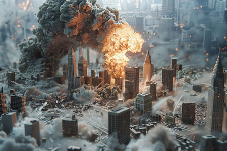 Nuclear explosion in the city. 3d rendering. toned imageAI Generated