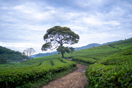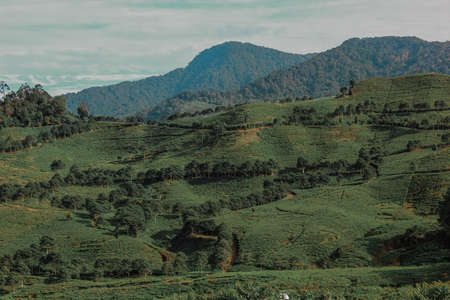 Magnificent view in the morning fresh air in the tea plantation in Pangalengan