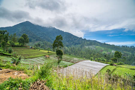 View of green vegetable plantation on the mountain plain