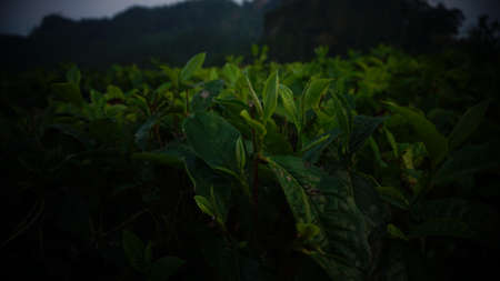 Green tea plantation in the morning. Selective focus. Nature.