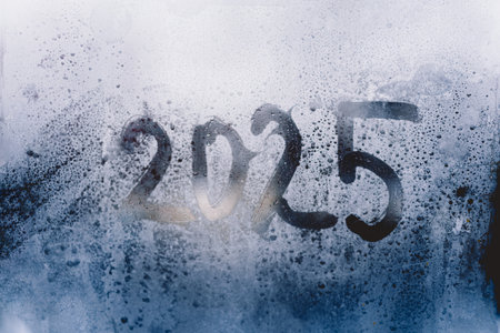 A misty window displaying the year 2025