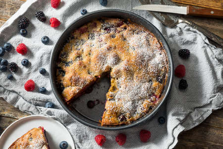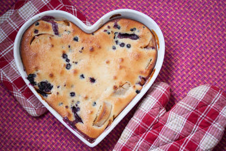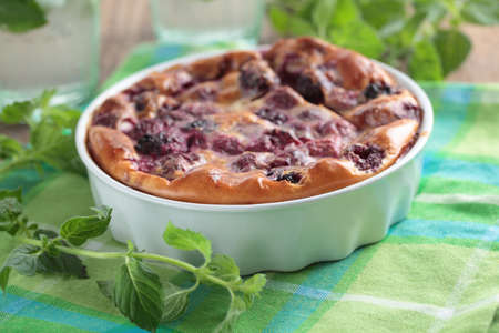 Clafoutis with blackberry in a baking dish
