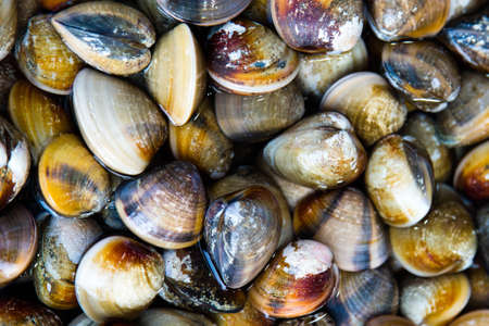 The fresh saltwater clams ready for sale at the farmers market. Saltwater clams also known as lala in Malaysia.