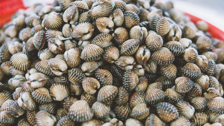 Soft focus of steamed cockles, This food is most popular in Thailand, Selective focus