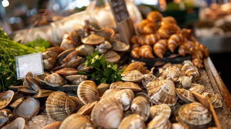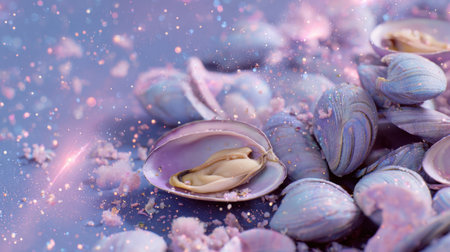 This enchanting image features vibrant clam shells against a dreamy sparkle background, perfect for ocean-themed projects and culinary inspirations.