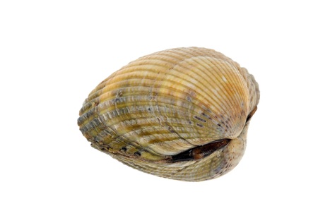A group of raw cockle, ark shell, shot high angle view isolated on white background