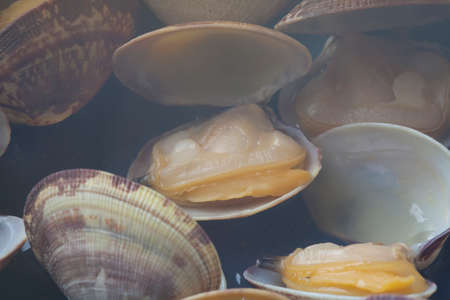 opened the shell of hokkigai (sakhalin surf clam), japanese bivalve