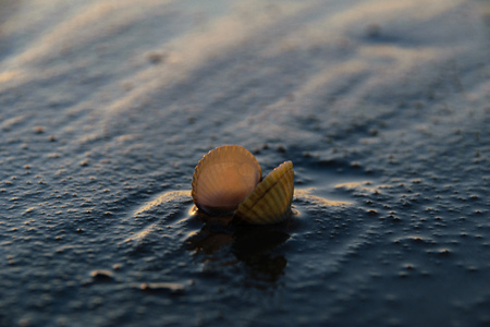 bivalve shell on black sand