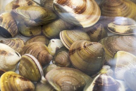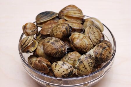 Vongole clams are ready for cooking. Fresh clams. Sea delicacy.