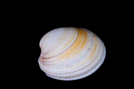A white clam shell on a black background