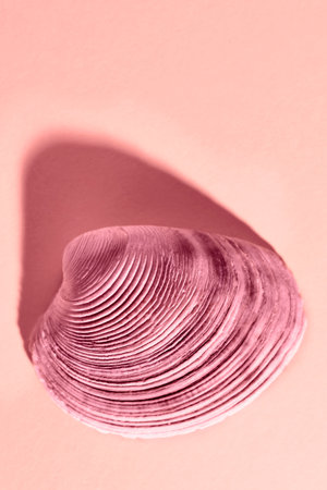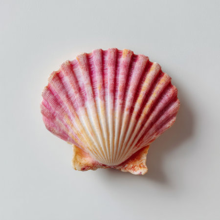 A stunning pink and white seashell showcases intricate textures and patterns, highlighting nature's beauty. Perfect for coastal themes and marine displays.