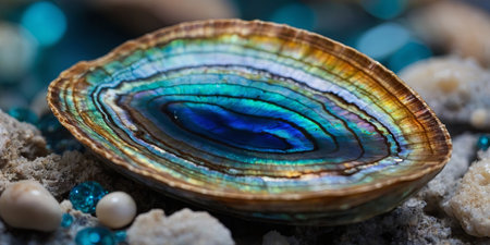 AI Generated. Close up of blue abalone pearl shell with shiny layers