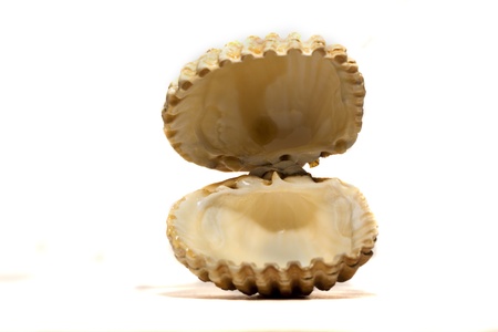 Close view detail of a cockle shell isolated on a white background.