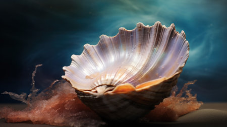A close up of a sea shell with pink and blue water, AI