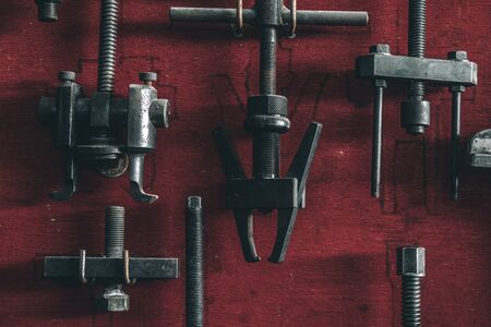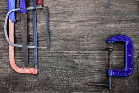 Clamps tool on gray metal background