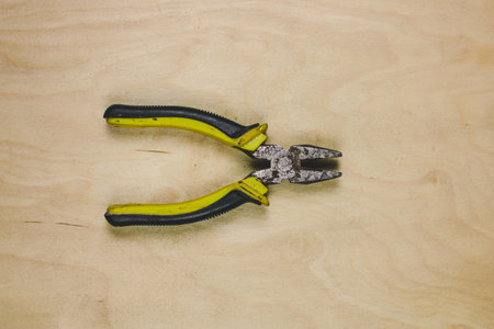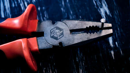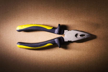 Pliers for repair work lying on the table. Repair tools in the h