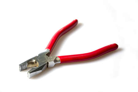 hand with pilers isolated on white backround