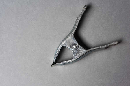Metal clamp on grey background