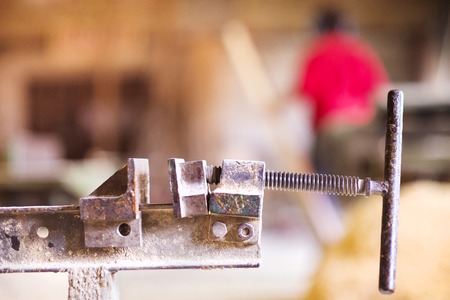Carpenter screw clamp tools pressing planks together