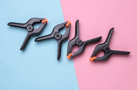 Plastic Spring Clamps on a pink blue background