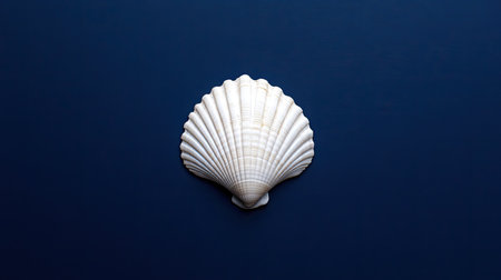 Enchanting Solitude: Captivating Close-Up of a Tropical Sea Shell on Dark Blue Canvas --AR 3:2