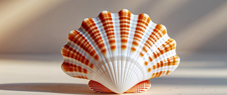 AI Generated. Beautiful Orange and White Scallop Shell with Striped Texture