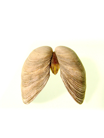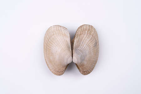 Exotic double sea shells isolated on white background. Concept of lungs. Macro shoot top view