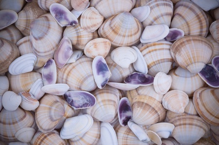 Closeup of a collection of seashells in sepia tone, perfect for natural textured backgrounds