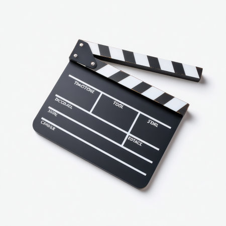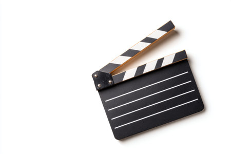 A classic film clapperboard featuring distinct white stripes on a clean background, symbolizing creativity and the filmmaking process in cinema.